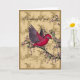 Elegant Victorian look greeting card with red bird on a blooming tree says "Thinking of you" but can be customised with your message.