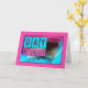 Colourful design in blue and pink with an hamster and this message: Day or Night Thinking of You always (not customisable). But you can easily add and change text (colour, font, size and position) by clicking the customise button. Another model is available.
