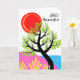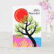 Hello Beautiful. Thinking of you, paper greeting card with an illustration of a red sun, curving tree, lake, and plants in a simplified art style. Art, image, and verse © copyright Shoaff Ballanger Studios, 2024.