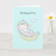 Thinking of You kitty cat with heart in hammock on light blue background. Text can be personalised. Ideal for friends, relatives, partner and more.