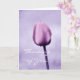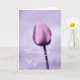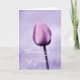 An elegant thinking of you greeting card with a photograph of a romantic lavender tulip with one glistening dewdrop. Part of a matching set. Image by: PhotographyTKDesigns
