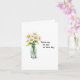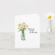 This heartfelt 'get well' greeting card features a beautiful watercolor-style illustration of a clear glass jar filled with five delicate white daisies, each with a vibrant yellow centre and lush green stems and leaves. The charming design is positioned on the left side of the card, creating a sense of balance and tranquillity. The simplicity of the image is complemented by the elegant, black typewriter-style font on the right, which reads "Thinking of you on this day." Against a plain white background, the card exudes a sense of peace and positivity, making it the perfect way to send well wishes to a loved one during a difficult time. 🌼🌿