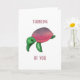 This thinking of you card features a watercolor painting of a cute sea turtle with a purple shell. See our store for more ocean animal greeting cards