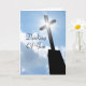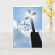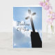 Original professional colour photograph with a silhouette of a church cross with shining star effect standing bright against the blue sky and white clouds. "Thinking Of You" script is written on the front and "Your Text Here" is on the inside to easily customise or delete to handwrite your message later. Perfect for a special Christian event such as baptism, first communion, confirmation, Easter, or a death. A beautiful, inspiring, thoughtful and symbolic religious greeting card, especially nice for any priest, minister, nun, or clergyman as well as for any friend or family member in time of loss or spiritual need, to let them know you're in their thoughts and prayers.