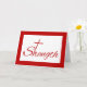 Thinking of You, paper greeting card featuring word art with the word Strength with a large red coloured cross. Bible scripture from Psalm 19:14 written inside. Art, image, and verse copyright © Shoaff Ballanger Studios, 2023.