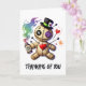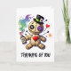 A funny friendship card for lovers of dry humour. Featuring a voodoo doll, pins and all, and the friendly wording, “Thinking of You.”