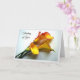 Customise the text on this Thinking of You, paper greeting card. Card features a photograph of a trio of mango coloured calla lilies. Art, image, and verse copyright © Shoaff Ballanger Studios, 2023.