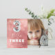 Third Birthday Silver Balloon | Pink Photo Party Invitation