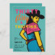 A fun 30th birthday party invitation template for women with a retro Western theme, featuring a comic book, poster style sketch of a beautiful woman wearing a cowgirl hat, in a flirty pose, with the title "thirty and flirty and thriving". A fun 30th birthday invite for a woman on her thirtieth birthday.