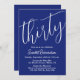 Thirty Modern Script Navy Blue 30th Birthday Party Invitation