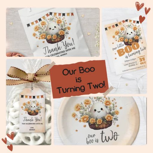 Celebrate a spook-tacular second birthday with this adorable “This Boo is Two” design featuring a smiling ghost surrounded by golden sunflowers, pumpkins, and fall foliage under a festive banner. The warm orange, gold, and cream tones make it perfect for October birthdays, fall parties, or pumpkin patch photo shoots.