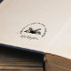 Modern circular lettering script calligraphy name with book greenery rubber stamp.