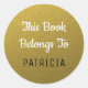 This Book Belongs To Bookplates|Gold Glitter Classic Round Sticker