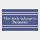 This Book Belongs to Name Blue and White Bookplate Rectangular Sticker