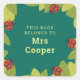 A bookplate sticker featuring green garden leaves and red ladybirds on a teal background. This would be perfect as a birthday gift for a child or for a teacher’s classroom.