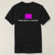 A black basic tee with an average size fuschia box on the front with white lettering underneath that reads " This box on the fuschia" on the back mimicking the now common phrase "...not gonna lie".