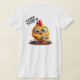 An adorably cute chick with big, expressive eyes and a vibrant orange-yellow plumage. The chick is holding a coffee cup with the text "LOTS OF COFFEE," while standing on a bed of coffee beans. The humourous caption "THIS CHICK RUNS ON..." is positioned above the chick, making it clear that coffee is the fuel of choice. The illustration is highly detailed and whimsical, with a bright and cheerful colour palette that stands out beautifully against the shirt.