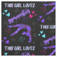 This Girl Loves Gymnastics - loaded with colourful hearts in pink, purple, turquoise and white all over.