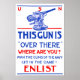 This vintage World War I poster features a large mounted artillery gun. It reads, "This gun is 'over there', Where are you? Man the guns of the Navy, Get in the game! Enlist". Celebrate American and WW1 History with this digitally restored vintage war poster product from The War Is Hell Store.