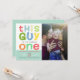 Celebrate your little guy's first birthday party with this cute invitation! Features colourful type and space to place your own photo.