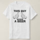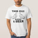 Design with two thumbs up pointing towards the guy wearing this shirt. This Guy Needs a Beer. Goes great with "This guy has a hangover" the day after. In black text.