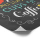 Coffee art print poster in yellow, grey, pool blue and red on a black chalkboard style background.
