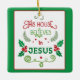 This House Believes in Jesus Ornament. Looking for a Christmas ornament with a religious message? This Christian ornament is perfect for anyone who wants to remember that Jesus is the reason for the season! The beautiful design features the words "This House believes in Jesus" written underneath in the traditional Christmas Colours of red and Green. It's a great way to celebrate your faith and to remind everyone of the true meaning of Christmas!