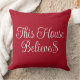 Enhance the visual appeal of your home with the This House Believes Typography Script Red Throw Pillow. Designed with a captivating red background, this exquisite decorative accessory instantly becomes the focal point of any room. The elegant typography script creates a timeless and sophisticated look, while conveying a powerful message of belief. Crafted from premium materials, this throw pillow is not only visually appealing but also incredibly soft and cosy. Perfect for adding a touch of colour and positivity to your interior, this lightweight accessory effortlessly completes any living space.