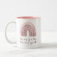 Cute watercolor multi-pink rainbow with the quote "This Mug Is A Hug From Me To You" in a fun modern calligraphy script. Great keepsake and gift idea for "her" for all special occasions, including the seasonal holidays.