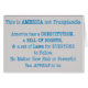 In blue text it reads: "This is America, not Trumplandia. America has a Constitution, a Bill of Rights, and a set of laws for everyone to follow, no matter how rich or powerful you appear to be."