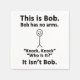 For the sarcasm lover in all of us. Check out this witty “This is Bob. Bob Has No Arms. Knock Knock. Who is it? It’s Not Bob.” design on apparel and gifts