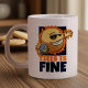 Carry the message about global warming, sunburn, or think of your own caption, with this climate change speciality mug. Use "Personalise this template" to tweak the "THIS IS FINE" text, if desired; text changes are reflected on both sides. Featuring a grinning Sun wearing dark sunglasses, with one fiery arm around the Earth, which looks hot and nervous.