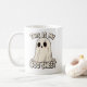 Playful cartoon ghost in a wrinkled sheet with a cheeky expression. A pun-filled Halloween design with a mix of spooky and silly.