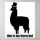 This Is My Fancy Hat Llama poster. A minimalist vector design featuring a fancy llama wearing an even fancier hat. A fine choice for anyone who loves llamas, top hats, and fancy animals.
