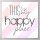 This is my happy place poster quote on pink and white textured stripes in a shabby chic style for wall art decor in home or office.