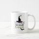 Modern and fun coffee mug that is great for Halloween or all year round. Black, Orange, and Purple Halloween saying "THIS IS WHERE THE MAGIC HAPPENS" in a popular typography font. Also features a Spooky Black Witches Hat and Black Bat.