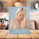 A modern 'This is your life' memory book with traditional classic typography in white including the personalised name on a pale blue background under a custom photograph. The perfect way to celebrate the life story of your loved one!