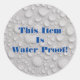 "This Item Is Water Proof" Sticker with bold blue text and water drops on white background or Personalise with your message and photo. Place on packages, etc. Great for any size business, large or small.