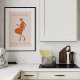 This stylish, retro Kitchen Poster features a dancing woman in an Orange/ Brown Pattern Dress.