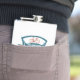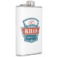 The flask itself is fine. It’s a cheap flask, obviously bought in bulk, however am prepared to overlook that. Given that it is a personalized item, I would have liked to have seen gift boxing instead of the generic packaging. Terrible printing, and/or quality. It’s a cheap, tacky vinyl. It is not cut straight and is also applied in a way that it is overhanging the bottom, causing the glue to catch on items and it will eventually roll and tear, damaging the wrap.