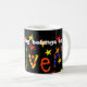 How long have you been painting/drawing? Have you had any formal training in Art/Illustration? What is the most useful thing you've learnt from Art teachers (if any!)? Are you influenced by any particular artist/s? What medium do you prefer (and why)? Why do you paint by hand rather than using a computer graphics program? How much of your time is spent painting/drawing? How long does one design typically take from start to finish? Where do you get your ideas? Do you sell your work - if so, where? Do you enjoy the promotional side of selling your work? Do you have any advice for other would-be greeting card designers/illustrators? What are your plans/aspirations for the future in relation to your art? paper collage. The background is black and the name, Oliver, is written in coloured paper letters and sprinkled with red, yellow and orange stars. The text, 'This mug belongs to..' is written just below the rim in white.