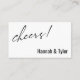 This suite's distinction is due to the contemporary script font used for accent phrases. In this piece, the elegant font was used to create a graphic depicting the words "this one is on us", placed on the front, and "cheers!" on the back. Use the template fields to add your personal details and make this unique, modern design your own. The background can be changed to any colour you prefer. Please reach out with any special requests or for customising assistance. // 158 //