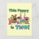 Puppy design 2nd birthday T-shirts, bodysuits, magnets, cards, tote bags, 2nd birthday buttons, and more featuring birthday candles, an adorable brown puppy, a party hat, and lots of birthday treats! Text reads "This Puppy is 2!".