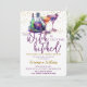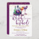A gorgeous purple and gold 'this witch is getting hitched' bridal shower party invitation. This fun purple and green design features spooky magic potion bottles and two cocktail glasses. Easy to customise with your own bridal shower, bachelorette or hen party details.