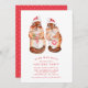 This Christmas party invitation design features watercolor squirrels wearing Santa hats. Set against a white background with a red and white polka dot backer. Personalise this custom design with your own holiday party details. Perfect for a corporate Christmas party or for a family.