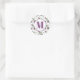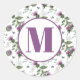 This elegant design features a soft botanical wreath of watercolor thistle flowers and greenery arranged around a clean circular frame. At the center sits a refined serif monogram letter in a muted purple tone, creating a beautiful focal point against the light background. The delicate florals in shades of green, lavender, and soft purple bring a natural, airy charm, while the thin circular border adds structure and balance. Inspired by classic botanical stationery, this design blends timeless floral elements with a customizable monogram, allowing the central letter to be easily changed for a personalized touch. The overall look is graceful, fresh, and perfect for a refined botanical aesthetic.