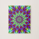 A digital abstract fractal image with a star flower design in green yellow blue red and pink. As well as puzzles this design is also available on most other products. If you need help or would like me to make changes to this or any other item email me. objowl at gmail.com. No obligation just pleased to be of service.
