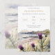 This invitations features an original digital watercolor illustration of thistles growing on the banks of the shore, which is a nod to the myth regarding how the flower thwarted a Viking invasion.