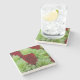 The coasters are gorgeous, a quality feel and heavy weight. They look like a precious archeological find. A rustic stone juxtaposed with a modern floral black and white print. I like the way the print goes slightly imperfect on the cut stone edges giving them a kind-of natural beauty.