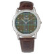 The watch looks really great!  Very sharp and well done. The leather band is really nice, though for a man's watch I think it should be longer. Unfortunately, it isn't big enough for my husband's wrist but I will get a replacement because he is very excited to wear it!